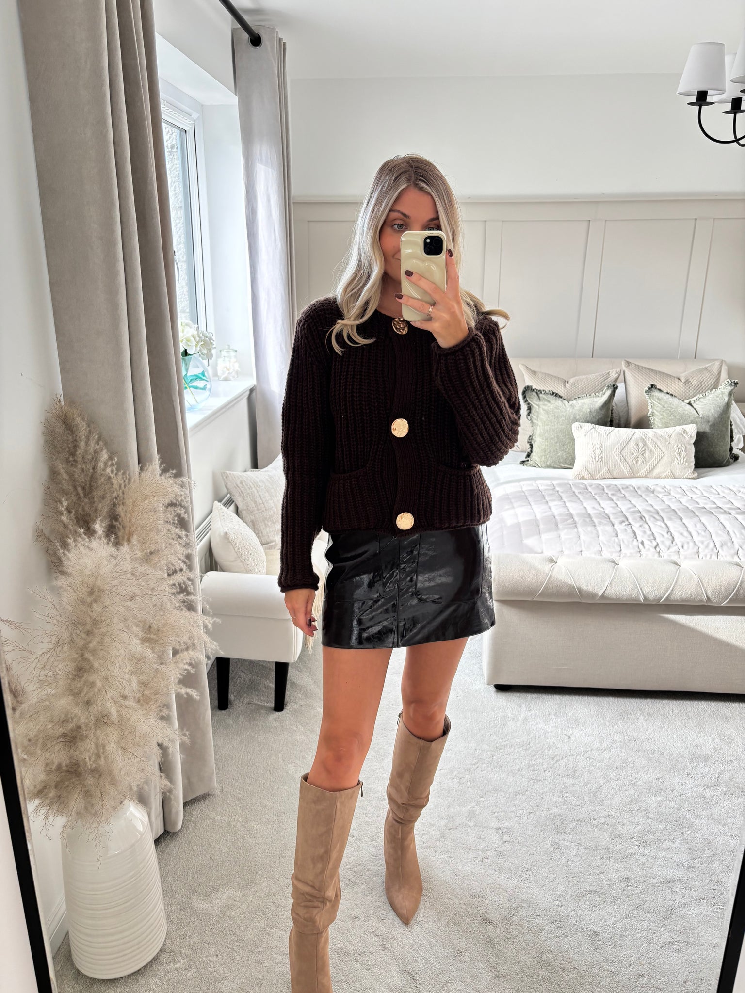 Our ‘Anita’ A-line Vinyl Mini skirt featuring front pockets is perfect for teaming with your favourite chunky knit and boots or dressing up with a gorgeous bodysuit and heels. A staple in your wardrobe this season! Back zip fastening.