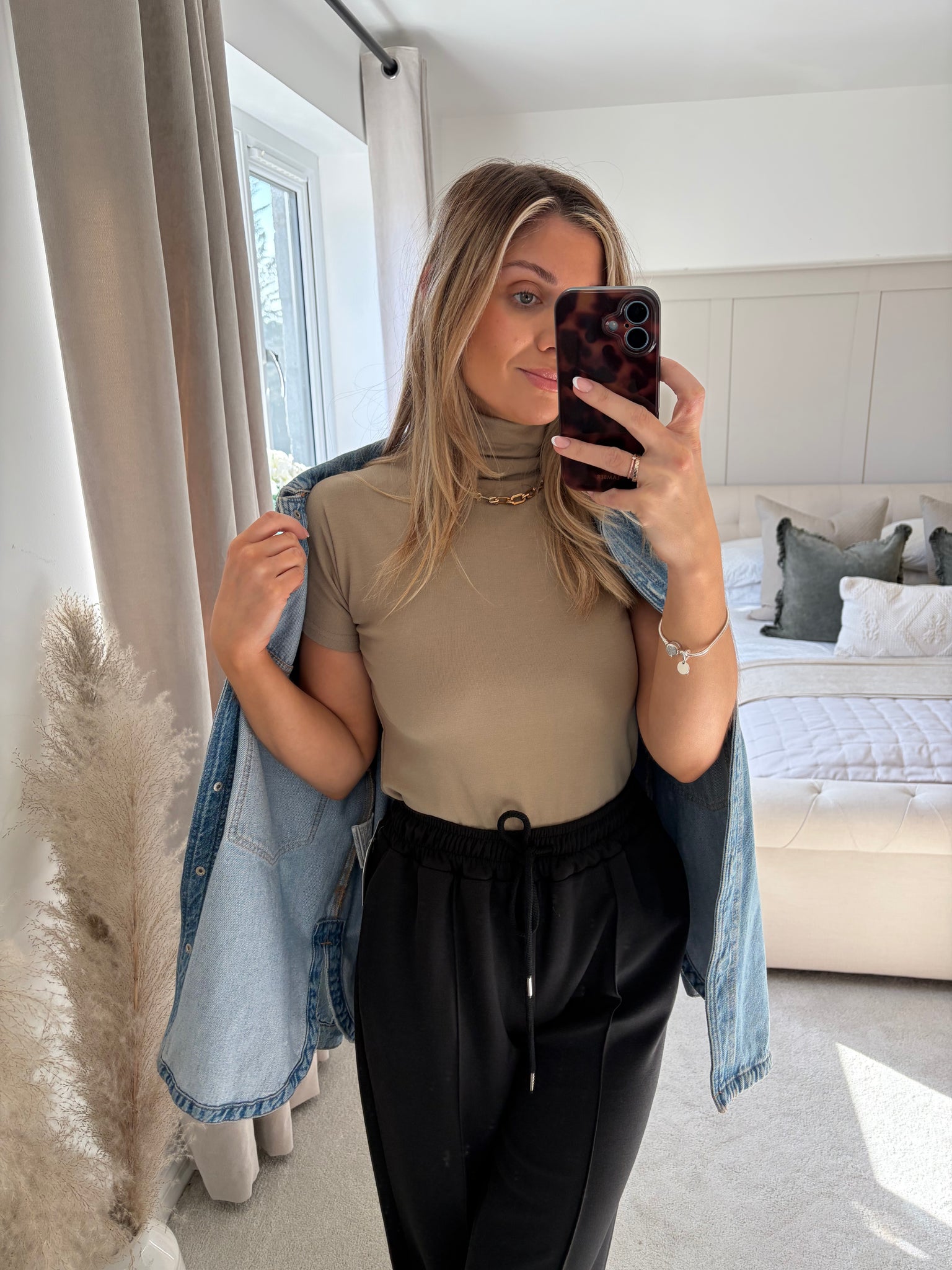 A gorgeous black lightly fleece lined top featuring short sleeves and mock neck. A perfect basic top for your wardrobe, layer it up on wear on its own.